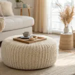 • Woven Ottoman or Footstool: Create a cozy spot to rest your feet with a textured ottoman that complements neutral room decor.