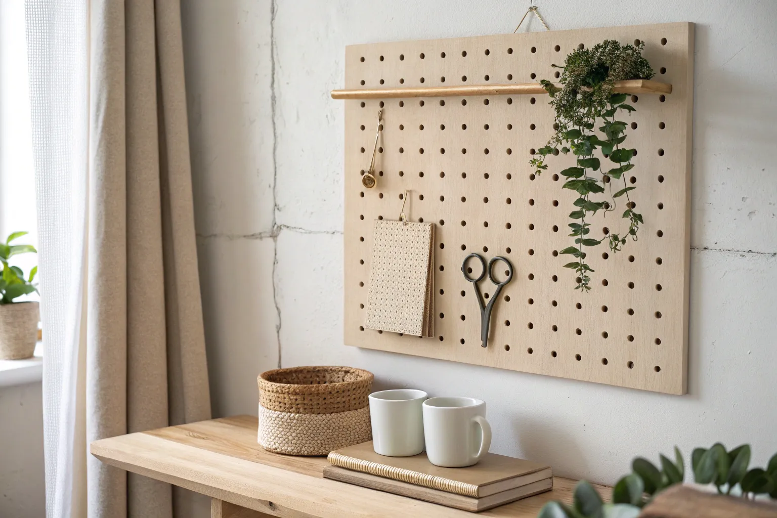 - Wooden Pegboard Accessories: Style your display with matching shelves and pegs to maintain the cohesive, natural aesthetic shown here.
