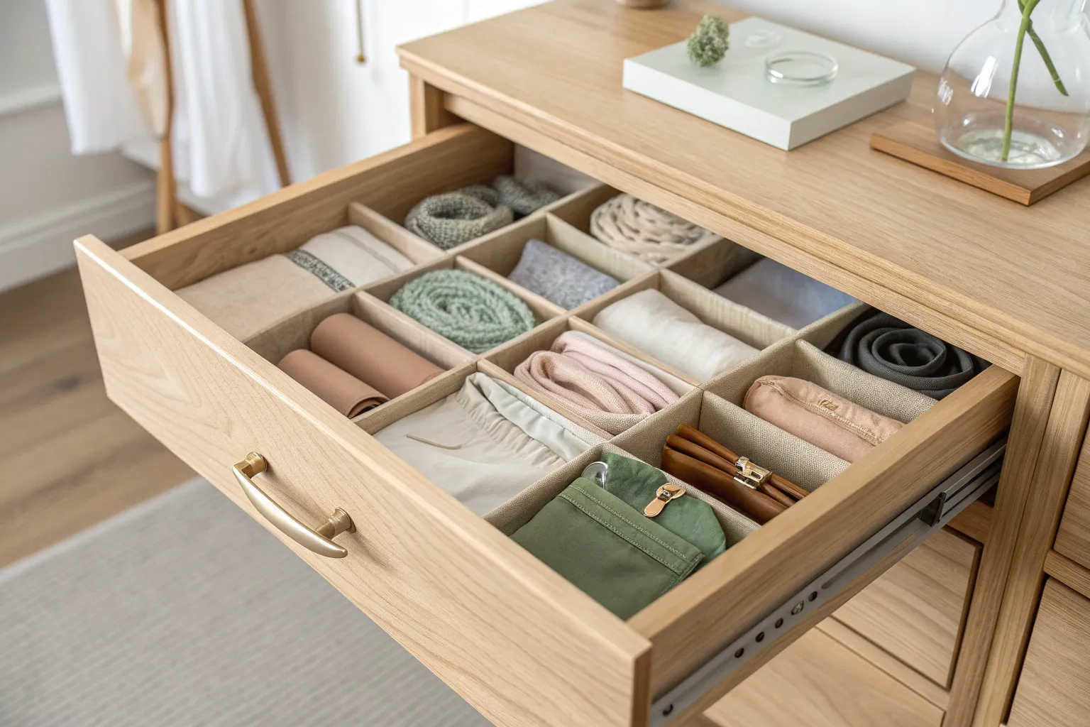 - Wooden Drawer Dividers: Transform open drawers into organized lanes that match your furniture’s aesthetic while preventing items from shifting around.