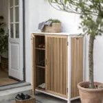 I’ve used a tilt-out shoe cabinet on a bedroom wall because it stores a surprising number of pairs while staying super slim. I always style the top like a mini console so it reads as decor, not storage.