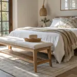 - Upholstered Storage Bench: Add hidden storage and extra seating to your bedroom with a stylish bench that keeps clutter out of sight.