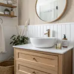 For a real wow moment, I’ve styled a broom closet door to blend in with the wall using paint and simple trim so it reads like built-in paneling. You still get all the practical storage, but the utility zone basically disappears.