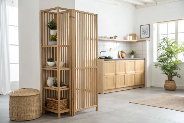 A floor-to-ceiling room divider is my favorite way to carve out “rooms” inside one open space without making everything feel smaller. In tiny apartments like mine, the best dividers add privacy and function while still letting light move through. Rotating Slats for Adjustable Privacy Rotating slat divider: twist for privacy on calls, open up for light and entertaining. I’ve used rotating slats in a client’s studio so they could twist for privacy during work calls…