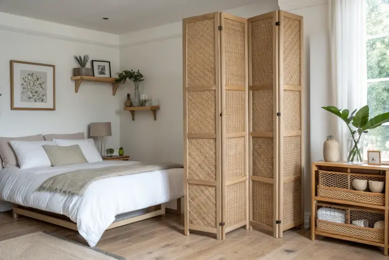 Rustic room dividers are my favorite way to carve out “rooms” in a small space without losing light or that open, airy vibe. I’ve used everything from reclaimed wood to branches in my own tiny apartments, and these ideas bring instant warmth with zero permanent walls. Rustic Folding Screen Rustic folding screen: instant cord-hiding charm with warm wood texture in a tiny corner. I’ve leaned a rustic folding screen behind my desk to hide cords…