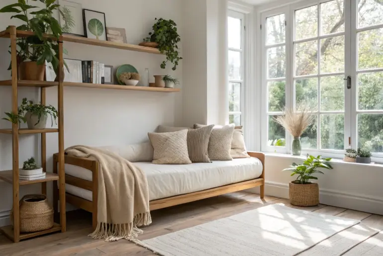 Studio decor is all about making one open room feel like a few different little worlds that actually work together. In my own 450 sq ft space, the biggest shift came when I stopped trying to hide the “studio-ness” and started styling clear, cozy zones on purpose. Divide With an Open Bookcase Use an open bookcase divider for privacy without blocking light—pretty, practical, and airy. An open bookshelf divider gave me privacy for my bed…