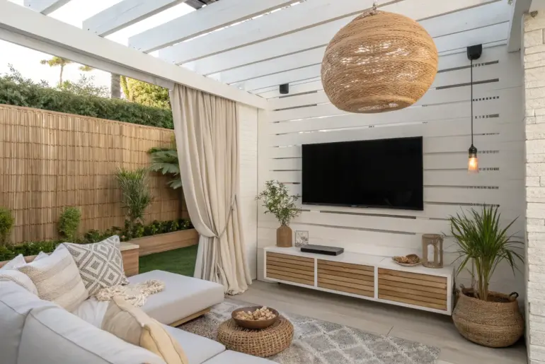 A small patio TV setup can feel like a full-blown outdoor living room if you treat the screen like the “anchor” and design everything else around comfort. I’ve done this in more than one tiny rental, and the right placement + protection makes it shockingly easy to actually use the space weeknights and weekends. Tuck the TV Into a Corner Corner-mounted patio TV keeps the walkway clear and turns tight spaces into a cozy lounge.…