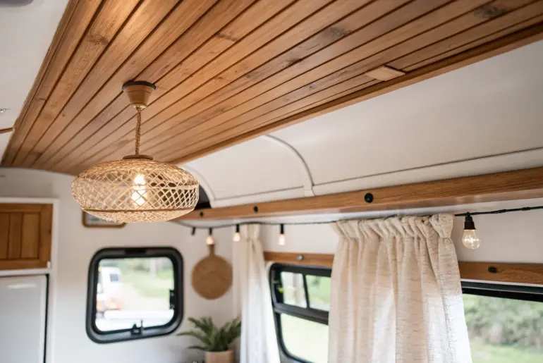 An RV ceiling takes up a huge chunk of your sightline, so when it’s dated or stained, the whole space feels tired. I’ve found that a few smart, lightweight upgrades can make your rig feel instantly more custom, cozy, and “you.” LED Strip Lighting Glow Perimeter Soft halo LED strip lighting along the RV ceiling edge for a cozy, glare-free glow. For cozy evenings, I love LED strip lighting hidden along the ceiling edge so…