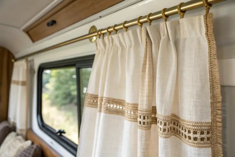 RV curtains are one of the quickest ways to make your rig feel like a real little home instead of a rolling box. I’ve helped a bunch of small-space clients dial in privacy, light control, and style with window treatments that can actually handle life on the road. Thermal Lining for Four-Season Comfort Thermal-lined RV curtains that block drafts at the glass—cozy, minimal, and four-season ready. When clients complain about drafts, I add thermal lining…