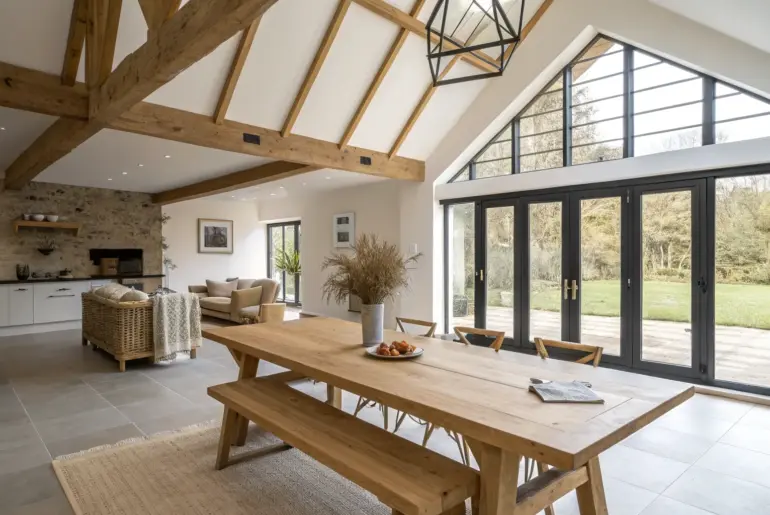 A small barn conversion can feel magically spacious when the layout works with the building’s height, light, and original structure. I’ve helped clients (and obsessed over my own tiny layouts for years) and these are the barn-specific layout moves that make a compact footprint feel like a real home. Double-Height Living Room for Breathing Room A double-height barn living room feels bigger with a statement pendant and exposed rafters. Keeping a double-height living room in…