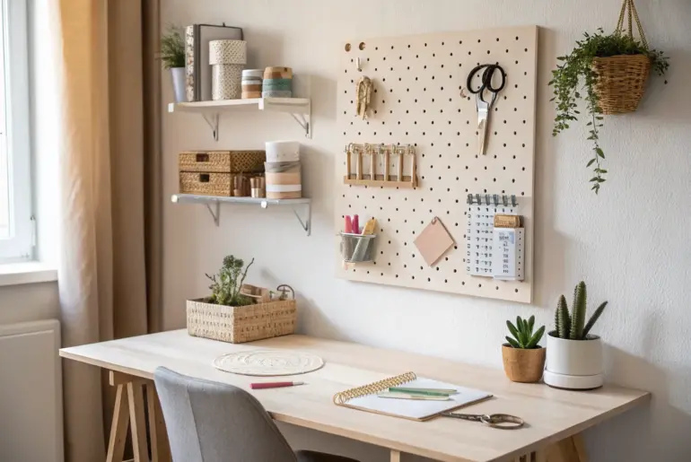 A small craft room can absolutely feel like a real studio if you plan for vertical storage and a workspace that earns its keep. Go All-In on Vertical Wall Storage Go vertical: a floor-to-ceiling wall organizer frees floor space and keeps supplies beautifully tidy. Any time my craft room starts feeling tight, I look up and add wall-mounted storage before I add another piece of furniture. In my own space, stacking storage from desk height…