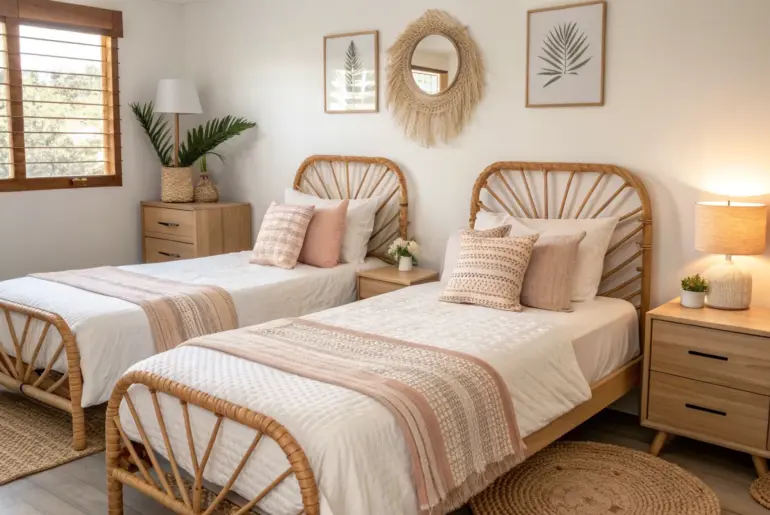 Sharing a bedroom can be the sweetest setup—until the clutter and competing styles start to creep in. These cute, small-space-friendly ideas help sisters share a room while still feeling like they each have a place that’s truly theirs. Built-In Look With Wall-to-Wall Bunks Wall-to-wall bunks with built-in shelves give sisters a polished, custom look in a small room. When sisters sharing a room need a polished look, I mimic a custom feel by framing bunks…