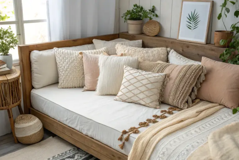A boho daybed is my favorite small-space cheat because it gives you sofa vibes all day and cozy sleep vibes at night. Rattan Daybed by the Window Sunlit rattan daybed by the window—minimal, airy, and perfectly boho for small spaces. In my last studio, I parked my boho daybed right by the brightest window and it instantly looked like a dreamy lounge spot. A rattan or wicker frame plays so well with sunlight that the…