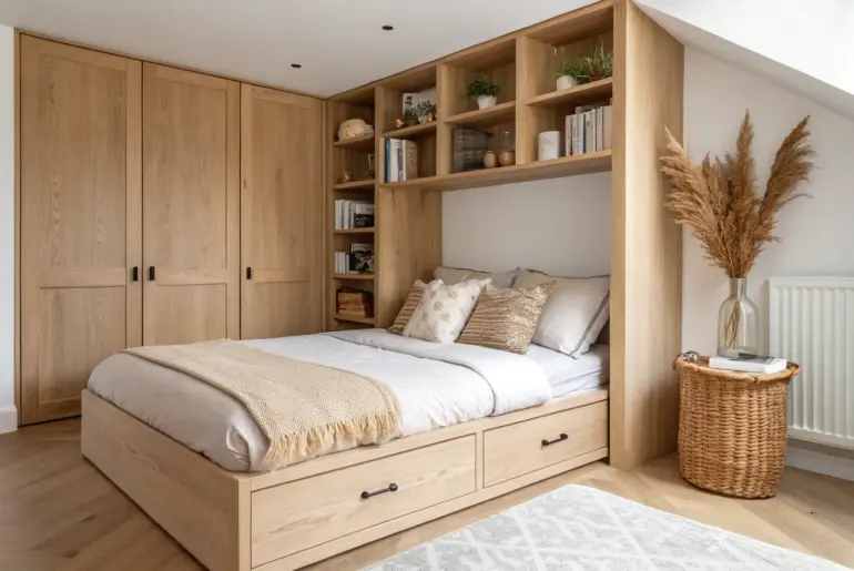 Small bedrooms can feel like they’re shrinking the minute you bring in real-life stuff like clothes, books, and extra bedding. Use Over-the-Bed Bridge Storage Over-the-bed bridge storage: a renter-friendly built-in look that saves precious floor space. In a super tight bedroom layout, I once framed the bed with over-the-bed storage so the wall did the heavy lifting instead of the floor. It’s the closest thing to a built-in look I’ve found for renters who still…