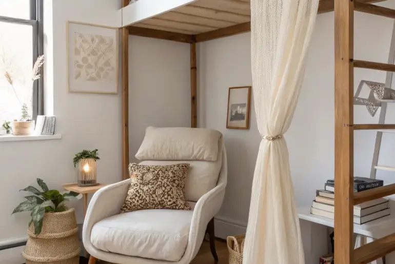 A well-planned loft bed is my favorite small-space move because it gives you real living space without needing more square footage. Hidden Storage Wall Under the Loft A calm hidden storage wall under the loft—closed fronts, open shelves, perfectly styled bins. One of my favorite adult loft bed layouts uses a full storage wall underneath—closed cabinets for visual calm, open shelves for display. I tried this in my own apartment with matching bins, and it…