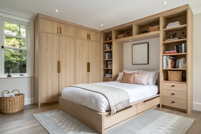 In a small bedroom, the right cabinet design can make the difference between “cozy” and “cluttered.” I’ve lived in tight apartments for years, and I’ve learned that smart cabinets aren’t just storage—they’re how you get your space (and your sanity) back. Over-the-Headboard Bridge Cabinets Bridge cabinets over the headboard turn unused wall height into elegant, built-in storage. Adding overhead cabinets that connect left and right storage is one of my favorite small-space moves because it…