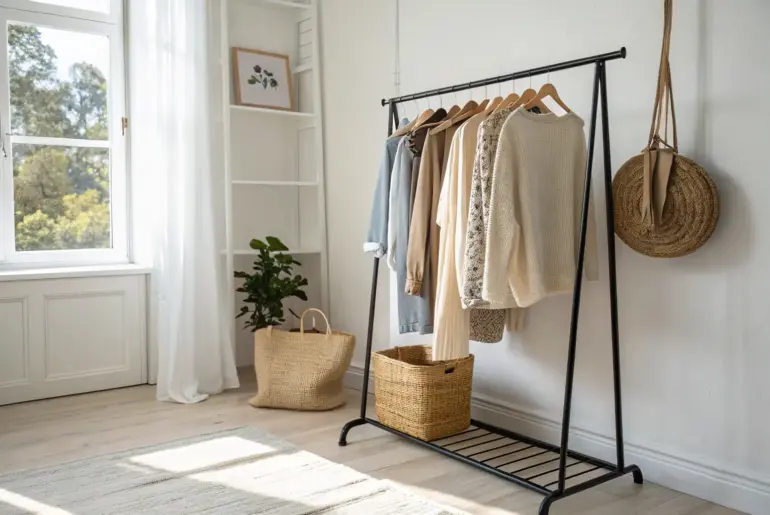 When your bedroom has no closet, it can feel like your clothes are slowly taking over every surface. I’ve lived in more closet-less bedrooms than I can count, and these ideas help you create a “closet” that looks intentional and pretty, not like a last-minute fix. Use a Freestanding Clothing Rack A slim freestanding rack creates instant hanging space—keep it airy with a few favorites. In my first no closet bedroom, a slim clothing rack…