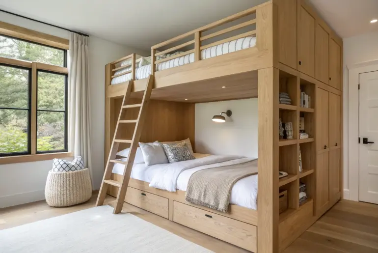 Turning a basic closet into built-in closet bunk beds is one of my favorite small-space moves because it adds real sleeping space without eating up the room. I’ve done versions of this in tiny apartments and guest rooms, and the “how did you fit that in here?” reaction never gets old. Three-High Bunks in a Tall Closet Triple bunks built into a tall closet—sleek Scandinavian lines with cozy boho warmth. In a super tall closet,…