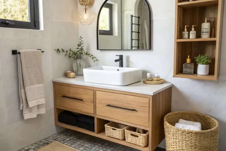 A tiny bathroom can feel cramped fast, but a few DIY tweaks can make it brighter, calmer, and way more functional. I’ve remodeled bathrooms in small rentals and my own compact place, and the best wins always come from smart storage and simple surface upgrades. Try a No-Drill Ladder Shelf No-drill ladder shelf: instant over-the-toilet storage that looks airy, chic, and rental-safe. When I couldn’t drill into walls in a rental, an over-the-toilet ladder shelf…