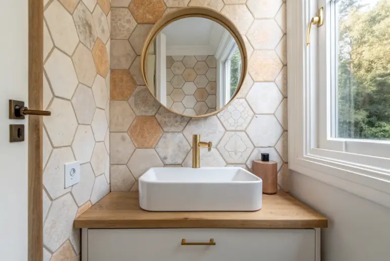 In a small powder room, wall tile is basically your shortcut to a finished, designer look without needing a full remodel. I’ve found the trick is using strategic wall coverage—just enough tile to create a moment, not so much that the space feels busy. Diagonal Tile Layout for a Bigger Feel Diagonal wall tiles create a subtle width illusion—perfect for making a tiny powder room feel bigger. Laying wall tile on a diagonal can totally…