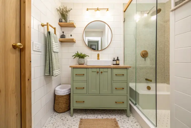 Green is my go-to color when a tiny bathroom needs instant personality without feeling busy. With the right shade and a few light-bouncing tricks, I’ve seen even the smallest baths feel fresher, calmer, and weirdly more spacious. Half-Wall Green Tile for Balance Half-wall green tile adds color without shrinking the space—calm, tall, and fresh. I’m obsessed with half-tiled walls in green tile because you get the color payoff without darkening the whole room. I did…