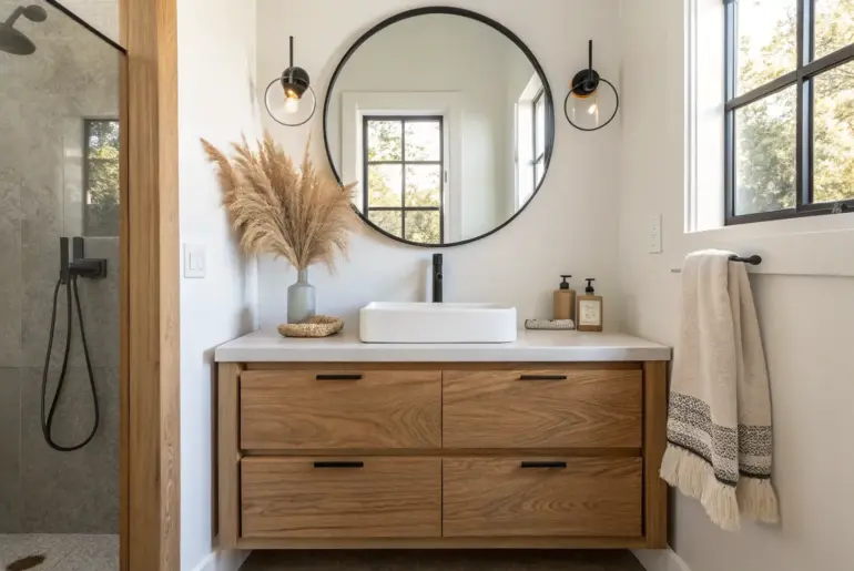 An ADU bathroom has to do a lot in a tiny footprint, so I always design it like a little powerhouse: efficient, easy to clean, and still pretty. After years of living small (and helping clients do the same), these are the ADU bathroom ideas I keep coming back to when space is tight but you still want that “ahh” feeling. Swap the Tub for a Walk-In Shower Swap the tub for a sleek walk-in…