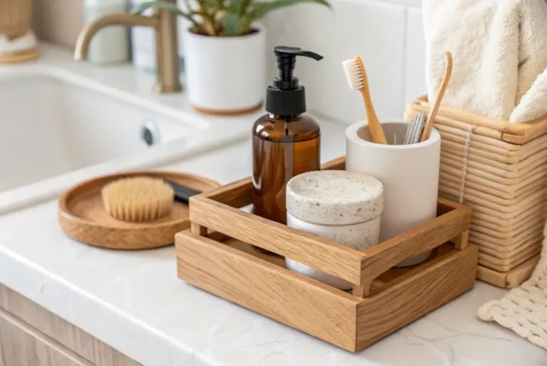 A cluttered bathroom counter can make even a cute space feel chaotic, especially when you’re getting ready in a hurry. I’ve learned that a few smart, pretty “homes” for your everyday items can instantly make your vanity look calmer and more spacious. Stack With a Counter Riser Shelf Add a counter riser shelf to double your vanity space—pretty, practical, and rental-friendly. A mini counter shelf riser creates an “upper level” for perfume or skincare while…