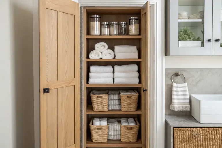 A bathroom pantry cabinet is basically the secret weapon for hiding all the “where does this even go?” stuff in one calm, closed-door spot. I’ve relied on pantry-style bathroom cabinets in my tiniest apartments to keep toiletries, towels, and backup supplies organized without making the room feel crowded. Slim Pull-Out Bathroom Pantry Cabinet Slim pull-out pantry cabinet: the prettiest way to store bottles and extras in a tight gap. A slim pull-out cabinet beside the…
