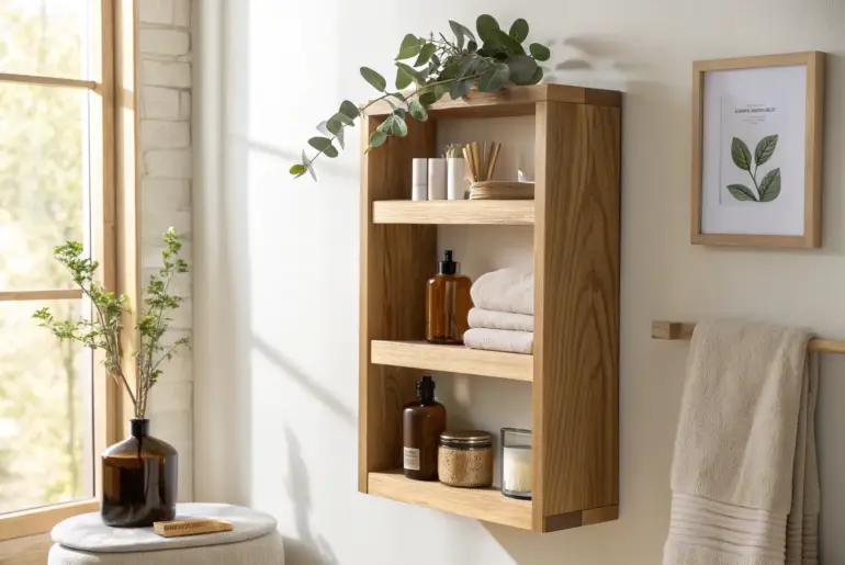When my bathrooms were tiny, floating shelves were the one upgrade that instantly made them feel calmer and more put-together. The trick is using that “dead” wall space for vertical storage while styling it like a little spa moment. Two-Tier Shelf Above Towel Hooks Two-tier floating shelf above hooks: everyday essentials below, extra towels up top—no floor space. If you already have hooks, try stacking floating shelves above them—I did this in a narrow bathroom…