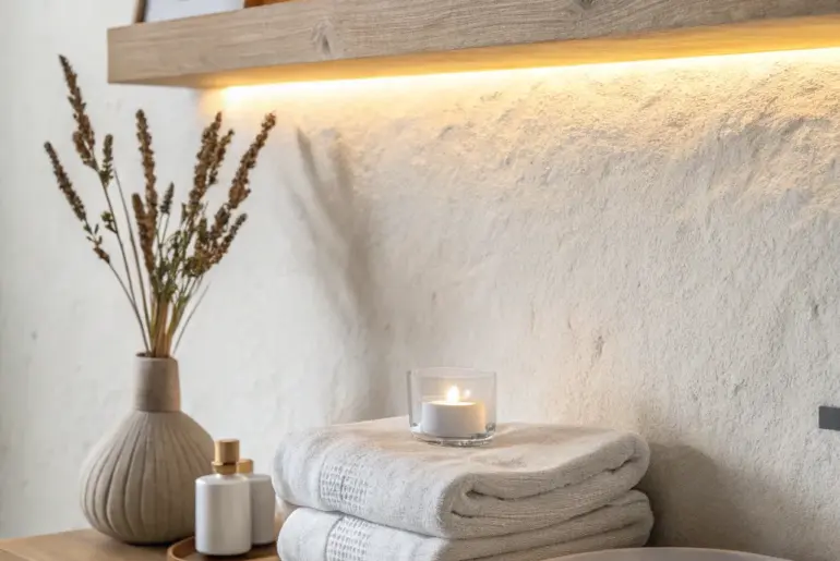 Bathroom shelves can go from “random stuff pile” to polished in a weekend with a few smart styling moves. I’ve decorated a lot of tiny bathrooms, and the secret is always the same: make your everyday essentials look intentional. Roll Towels Like a Spa Spa-style rolled towels in soft neutrals make small bathroom shelves look calm and chic. In my own small bathroom, rolled towels instantly made open shelves look calm and hotel-like instead of…
