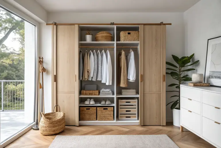 In a small room, a swinging closet door can eat up valuable floor space faster than you’d think. I’ve lived with plenty of tight layouts, and the right closet door can make your whole space feel calmer, cleaner, and easier to move around in. Double Sliding Panels Double sliding closet panels in light oak—balanced, space-saving, and beautifully minimal. If your closet is wider, double sliding doors feel balanced and still keep the floor open for…