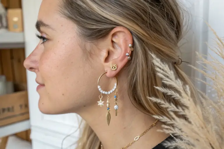 Hey there, earring enthusiast! If you’ve ever found yourself staring at your jewelry box, wondering how to style your collection into something fabulous, you’re in the right place. Curated Ear Stacks Elevate your style with a perfectly curated ear stack, where simplicity meets elegance. Carefully arrange earrings that complement each other in a balanced manner. It’s like assembling a fashionable puzzle. Items that may come in handy: Gold Hoop Earrings with Pearl Accents: Elevate your…