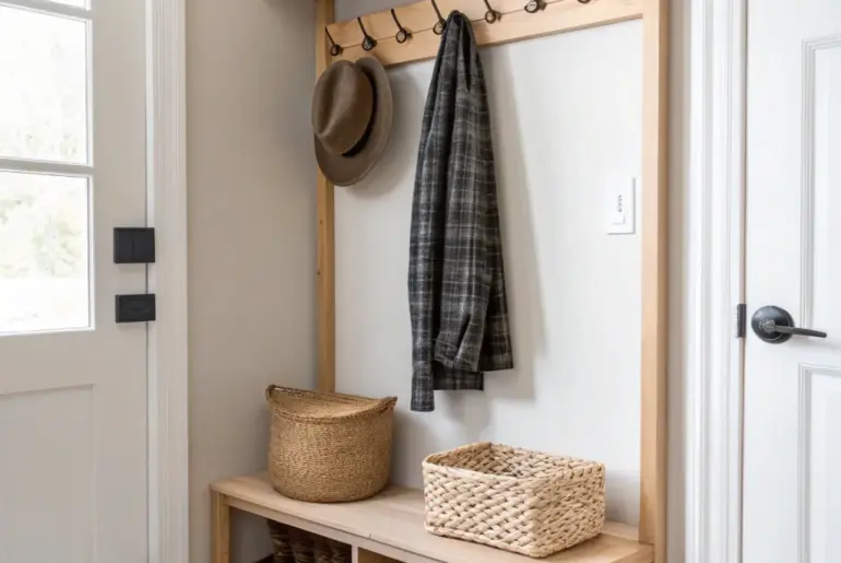 If your “stuff” doesn’t have a home the second you walk in, it will absolutely take over every surface you own. I’ve lived in tiny apartments for years, and a smart small drop zone is the quickest way I know to make a home feel instantly calmer. Closet Door-Off Mini Mudroom Door-off closet nook turned mini mudroom—one sleek organizer keeps tiny entryways calm. In one apartment, I removed the closet doors and built a simple…