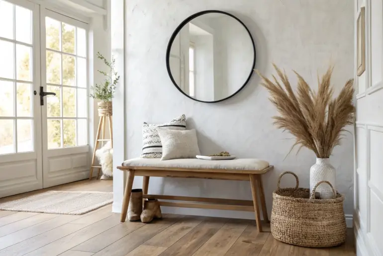 An entryway bench and mirror combo is my favorite way to turn a blank front-door wall into a real, functional drop zone. In small spaces, that little spot to sit, stash shoes, and do a quick last look makes the whole home feel calmer. Mirror Cabinet Above a Storage Bench A sleek mirror cabinet hides entryway clutter—while a warm oak storage bench sits below. When my entry was swallowing small stuff, I used a shallow…