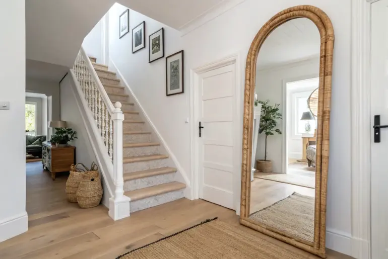 A hall and stairway might be “pass-through” spaces, but they can set the whole mood of your home in seconds. Oversized Art at the Stair Turn One oversized artwork at the stair turn instantly calms and brightens a narrow landing. On my last landing, I hung one oversized art piece at the stair turn, and it stopped that blank wall from feeling like a tunnel. I like this more than lots of small frames there…