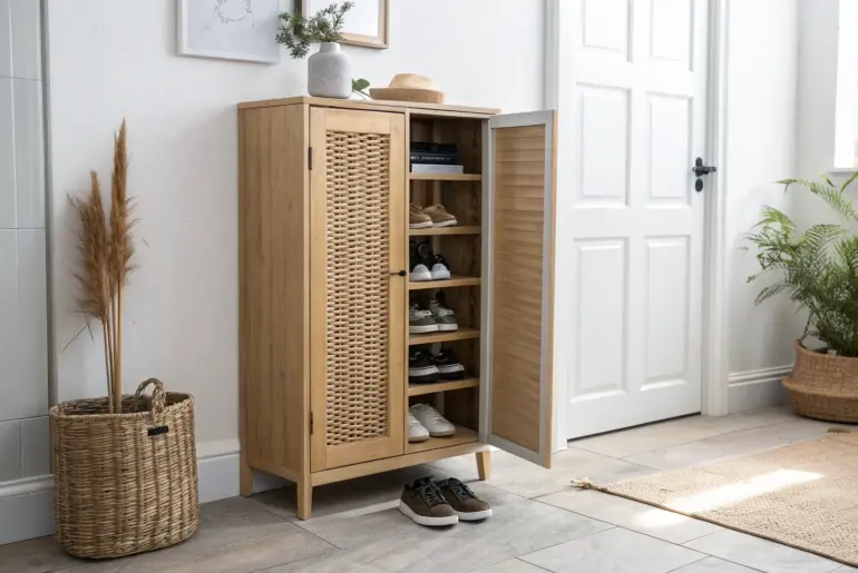 Mudroom shoes have a way of multiplying overnight, especially in a small entryway. I’ve learned that the secret isn’t more floor space—it’s smart, built-in-feeling shoe storage that keeps the traffic lane clear. Storage Bench With Shoe Cubbies A sleek shoe-cubby bench that adds a seat and instant order to a tiny mudroom. I swear by a mudroom bench with shoe cubbies because it gives you a seat and a home for the pairs you wear…