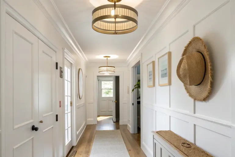 Hallways can feel like dead space, but the right hallway sconces turn them into a cozy, designed moment. I’ve used sconces in my own tiny apartments to add glow, depth, and style without stealing a single inch of floor space. Sconces Mounted on Wainscoting or Paneling Brass globe sconce on crisp wainscoting—instant built-in, designer hallway glow. I love hallway sconces over wainscoting because the millwork gives them a built-in, designer look. I helped a client…