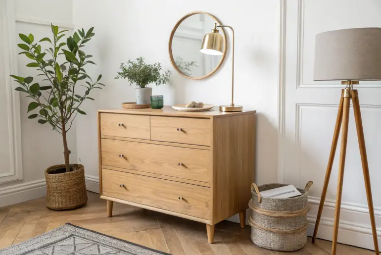 A well-styled dresser top can make your whole room feel finished, even when the rest of your place is doing its best “small-space chaos” impression. These drawer decor ideas are all about creating a pretty, practical vignette on top of your drawers without losing the precious surface area you actually need. Try an Unexpected “Memory Shelf” Layer Layer a postcard and pressed leaves in a leaning frame for a story-rich dresser moment. For a real…