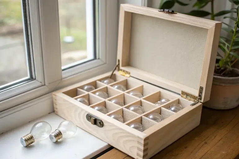 Loose light bulbs rolling around in a closet is basically a guarantee someone’s going to break. These light bulb storage ideas keep bulbs protected, sorted by type, and actually easy to grab in a small space. Ornament Organizer for Bulbs Ornament organizer compartments keep light bulbs secure—perfect for small closets. I once used an ornament organizer as light bulb storage, and it worked like it was made for it. Those built-in compartments keep bulbs from…