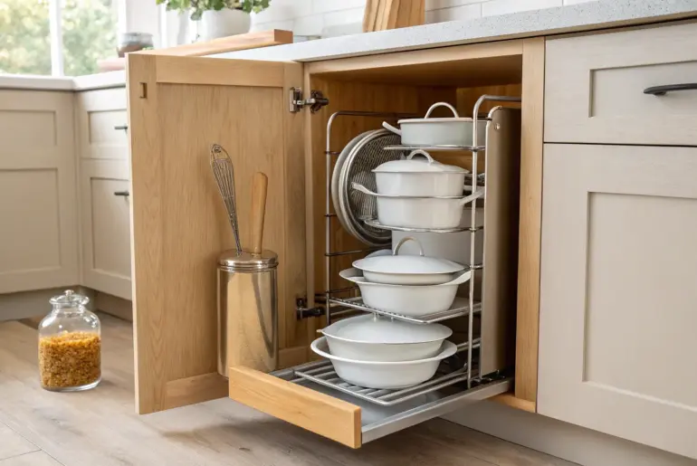 If your pots and pans feel like they multiply overnight, you’re not imagining it—cookware clutter gets chaotic fast in a small kitchen. Vertical Pan Files in Base Cabinet Vertical pan files keep skillets and lids upright—grab one like a folder, no clanging stacks. I love a simple vertical pan organizer in a base cabinet because you can pull out one pan like a file instead of unstacking everything. I use it for skillets and lids,…