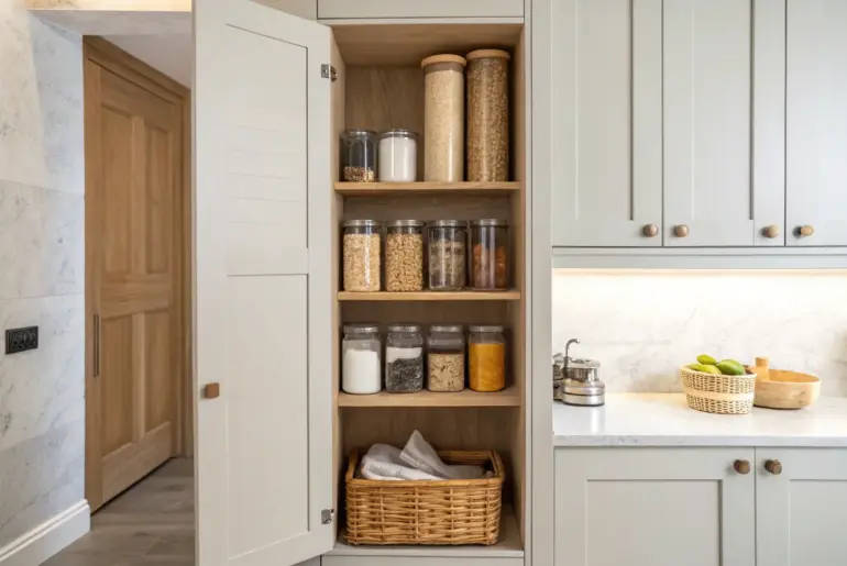 A shallow wall pantry is my favorite small-space upgrade because it stores a surprising amount without stealing precious walking room. When shelves are intentionally slim, you can actually see everything, use what you have, and stop buying duplicates. Behind-the-Door Shallow Pantry Wall Turn the back of your pantry door into a shallow pantry wall for oils, sauces, and snacks. I’ve turned the back of a pantry door into a shallow wall pantry by adding slim…