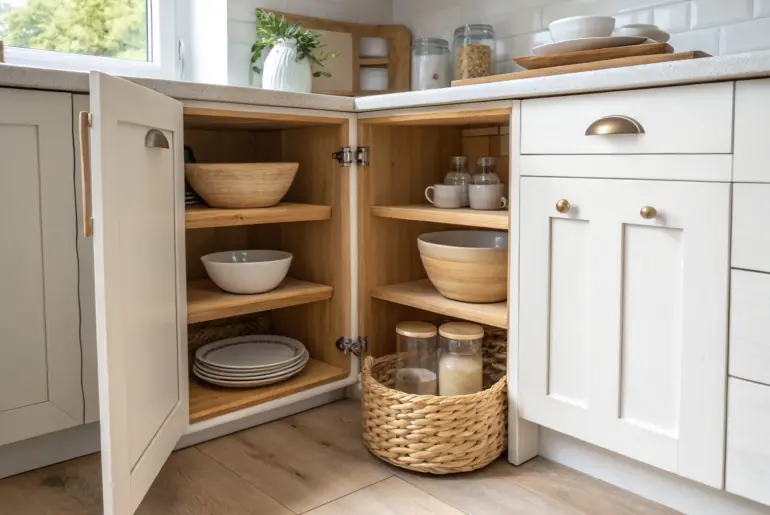 Corner cabinets used to be the black hole in my 450 sq ft kitchen, and I hated wasting time digging for stuff. Once I started using a few smart corner cabinet tricks, that awkward space became some of my most functional storage. Go Vertical With Tiered Storage Stack a two-tier turntable in the corner cabinet to add height without losing visibility. In my upper corner cabinet, I stacked a simple two-tier turntable so I could…