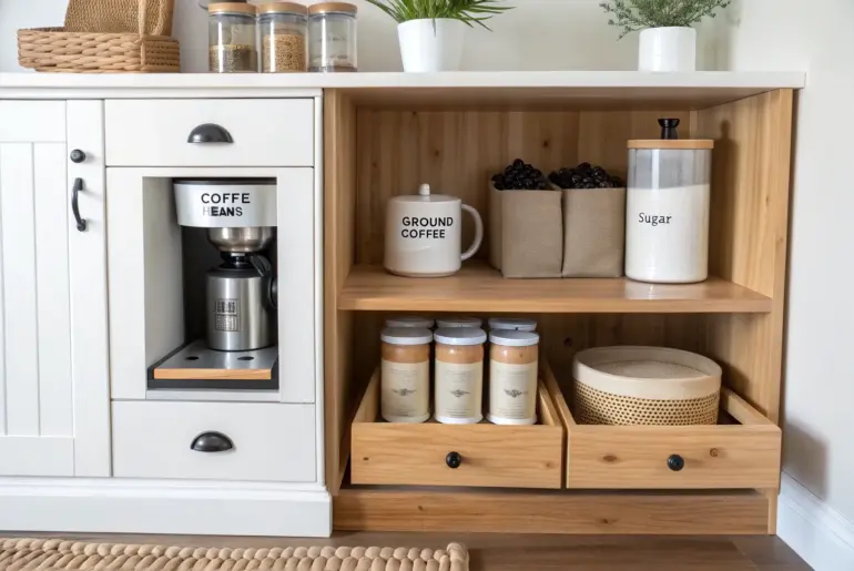 If your coffee stash is scattered all over the kitchen, mornings can feel way harder than they need to be. Dedicate a Skinny Vertical Shelf Turn a skinny pantry slot into a vertical coffee station—beans, pods, and backups in one spot. In one apartment, I had this awkward skinny pantry slot, and turning it into coffee supply storage was a total win. I stacked beans, pods, and backups top-to-bottom so my main kitchen cabinets stayed…