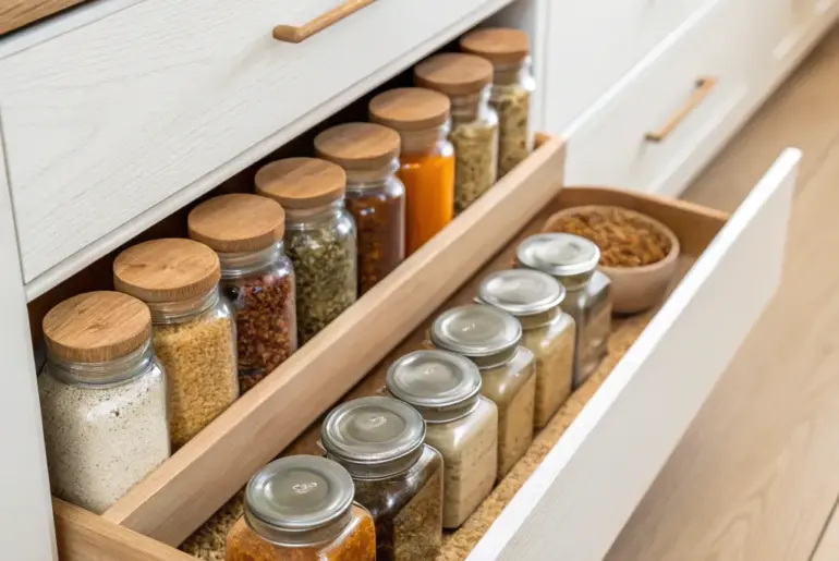 If your spices are always vanishing into the back of a cabinet, you’re not alone—I’ve fought that tiny-kitchen battle more times than I can count. Over-the-Door Spice Rack Maximize cabinet doors with a sleek spice rack—pretty, practical, and space-saving. The inside of a cabinet door is prime real estate, and I’ve used a door-mounted spice rack to free up an entire shelf in my kitchen. Just keep your most-used spices at eye level so you’re…