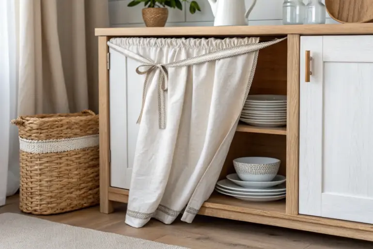 Cabinet curtains are my go-to trick when a small space needs to feel softer, cozier, and way less cluttered. I’ve used them in tiny apartments for years because they’re budget-friendly, renter-friendly, and honestly just charming. Two Half Panels for a Center Opening Two half linen panels meeting in the middle—easy under-sink access with a finished look. I like doing split cabinet curtains that meet in the middle, especially for under-sink storage where you’re constantly reaching…