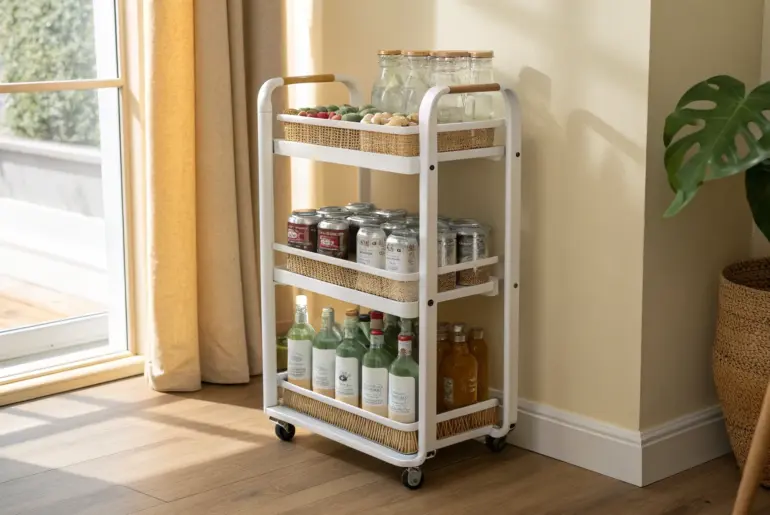 Drink storage can get messy fast in a small kitchen, especially when you’re juggling cans, bottles, and mixers all at once. Gravity-Fed Rolling Racks A gravity-fed rolling rack keeps cans visible, tidy, and always ready in deep shelves. A gravity-fed drink rack is my favorite “set it and forget it” setup since the next can rolls forward automatically. I used one on a deep shelf, and it instantly made my bulk drinks feel organized instead…