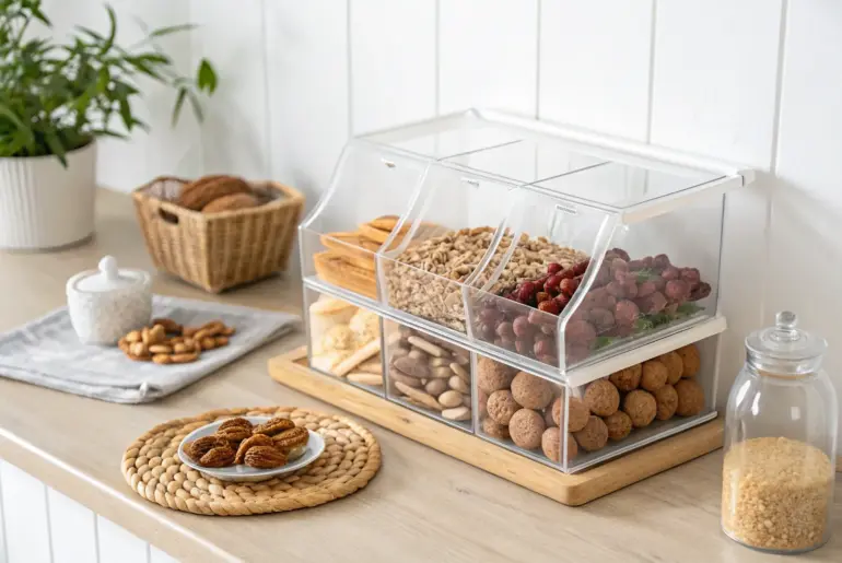 Snacks multiply fast in small kitchens, and suddenly every cabinet is a crinkly, half-open mess. These snack organizer ideas are the exact tricks I use in my own tiny apartment to keep everything visible, tidy, and easy to grab. Stackable Snack Bins for Vertical Space Stackable snack bins turn vertical space into a tidy, color-pop snack station. In tiny cabinets, I stack stackable bins so I’m using height instead of wasting it above short snack…