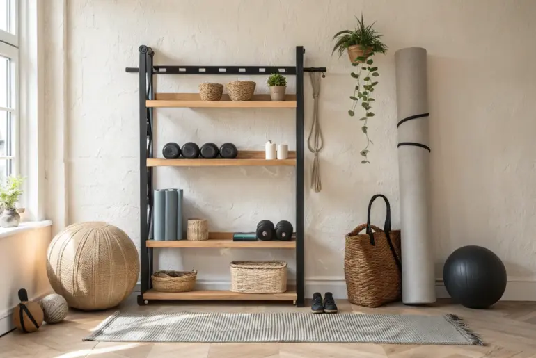 Home gym gear has a sneaky way of spreading across the floor and making even a cute little space feel chaotic. I’ve learned that the best storage setups keep everything visible and grab-and-go, while still looking clean enough for everyday life. Corner Stand for Long Gear A sleek corner stand keeps long gym gear upright—no more cluttered, leaning-against-the-wall look. I carved out one awkward corner for vertical storage of long items, like bars, sticks, or…