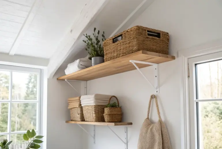 That strip of space right under the ceiling is basically free storage you’re already paying rent for. Catwalk Ceiling Shelf for Pets A ceiling catwalk shelf that adds storage up high and keeps curious cats happily exploring. A client with two energetic cats added a ceiling shelf walkway, and it was honestly the most fun storage-adjacent project I’ve done. If you pair it with a couple small bins up high, you get pet enrichment and…