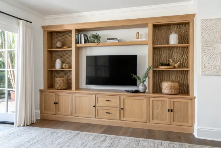 A TV console can be way more than a spot for your screen—it can become a whole mini “media wall” that makes your living room feel finished and intentional. In my tiny-apartment years, the right console setup always did double duty: hiding the mess while giving me a stylish focal point. Handleless Fronts for a Minimal Look Handleless TV console: push-to-open fronts and calm, clutter-free style for small living rooms. Whenever I choose a sleek…