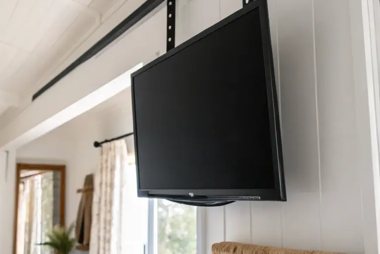 If your walls are already booked with windows, closets, or weird angles, a TV hanging from the ceiling can feel like the ultimate small-space cheat code. I’ve used ceiling mounts in tiny apartments and with clients to free up floor space, fix awkward layouts, and still get a comfy, binge-worthy viewing angle. Open-Concept TV Hanging Where No Walls Exist A ceiling-mounted TV that pivots effortlessly—perfect for open layouts with glass and doorways. I had a…